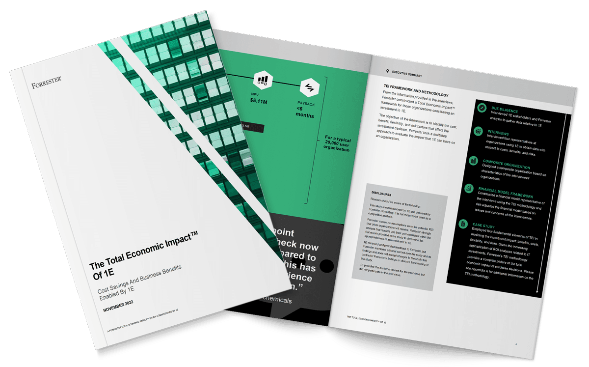 1E customers get powerful Stability, Performance, Responsiveness, and Sentiment data to identify and remediate problems in real-time. Next, 1E helps them automate self-healing to stop the issue before it spreads and ruins anyone’s workday. Reach out to 1E today to try the platform and learn how we can help create DEX ROI for you.